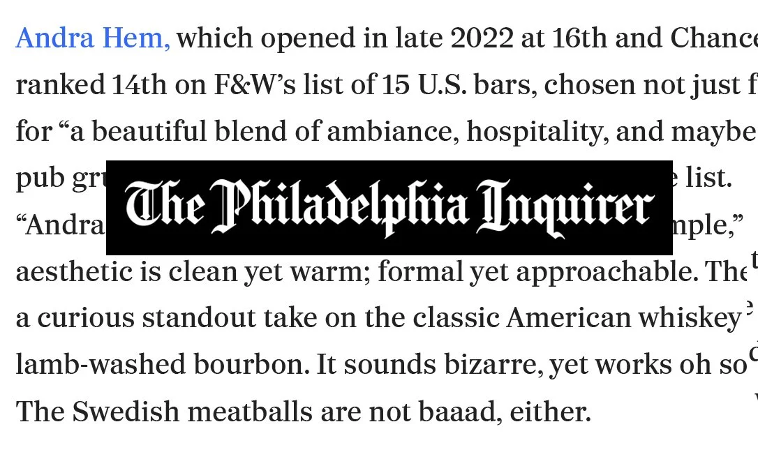 Philly is no stranger to a good cocktail spot—but none are quite like the Rittenhouse locale, Andra Hem